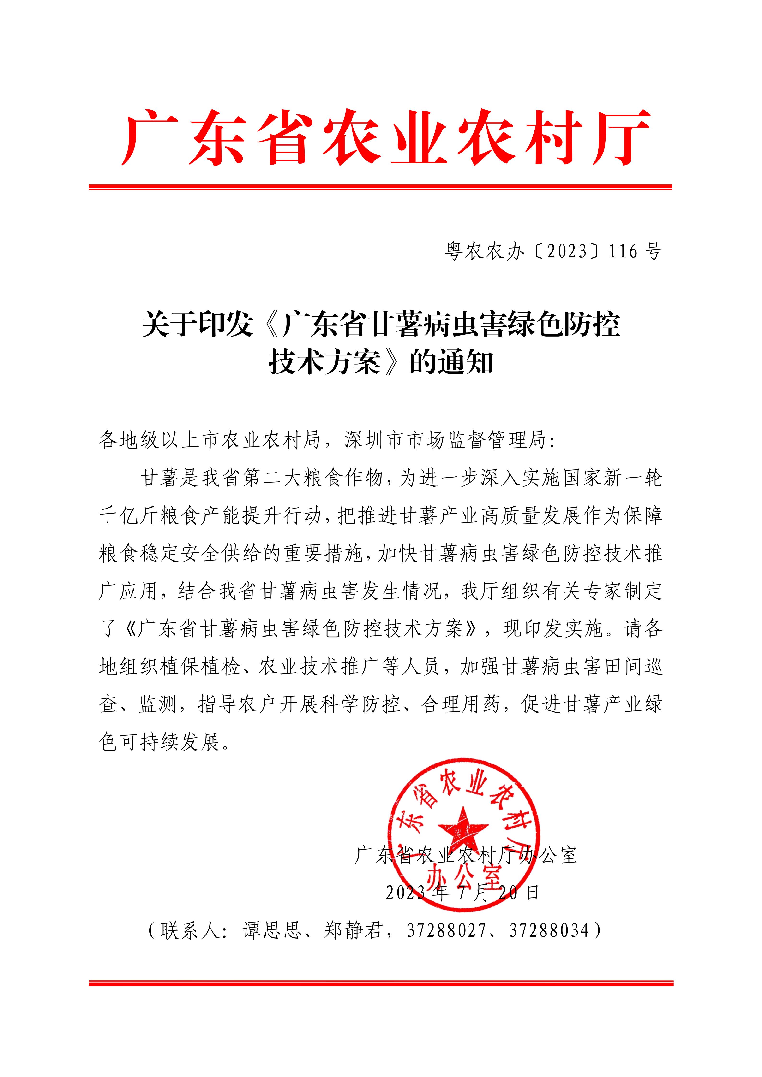 转发《广东省甘薯病虫害绿色防控技术方案》